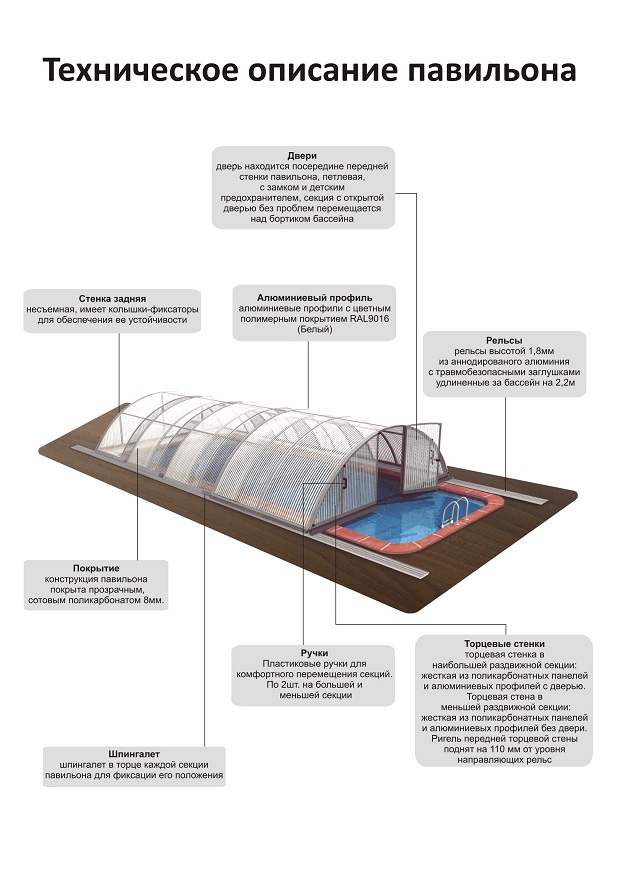 форму, этот раздвижной павильон для бассейна аккуратно впишется в